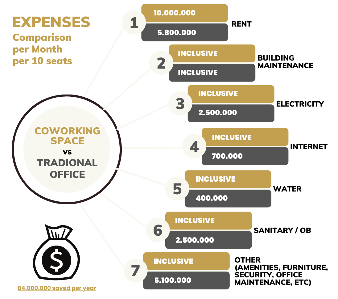 Banyak hal-hal yang perlu dipertimbangkan sebelum sewa kantor tradisional atau coworking space, simak perbandingan berikut sebagai gambaran kelebihan coworking space untuk Anda
